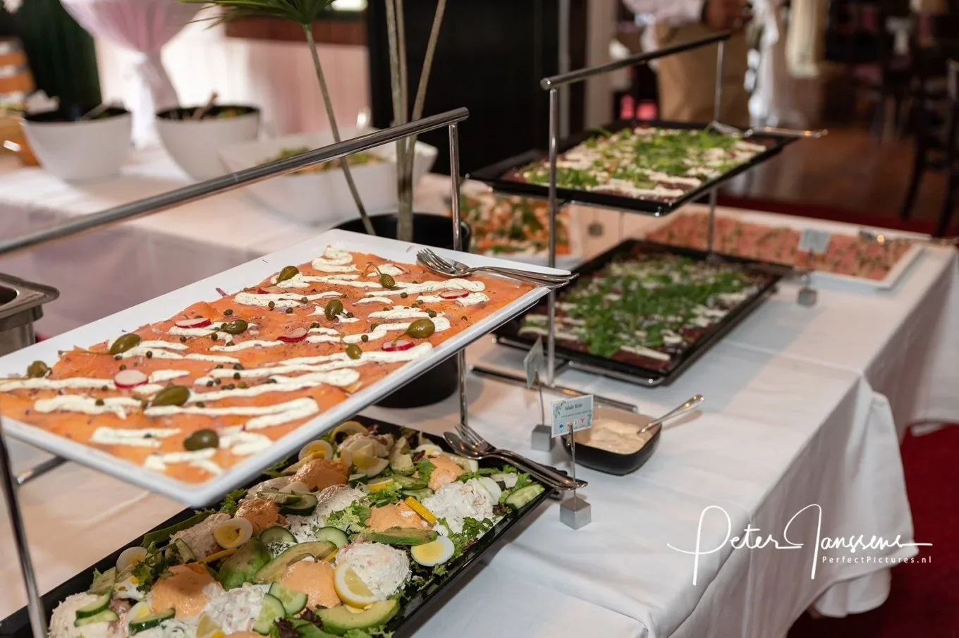 Een buffet is te bestellen vanaf 20 personen. Ook hebben wij heerlijke lunch buffet mogelijkheden deze zijn te reserveren vanaf 15 personen, klink hieronder voor al onze lunch buffet mogelijkheden. Aanpassingen en uitbreidingen zijn in overleg mogelijk. Kinderen van 0 t/m 2 jaar zijn gratis. Kinderen van 3 t/m 9 jaar zijn ½ geld. De arrangementsprijzen zijn exclusief dranken. Wij berekenen voor onze arrangementen geen zaalhuur. In overleg kunnen wij onze locatie ook exclusief voor u reserveren. Op al onze levering en diensten zijn de Uniforme Voorwaarden Horeca van toepassing, deze kunt u op onze website terug vinden.